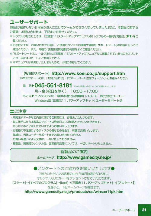 标题: 三国志11PK版 - 日文版说明书