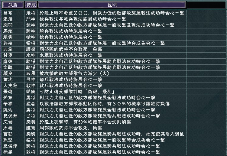 修改部分武将特技,调整兵器与战法攻防,所有武将技,科技,设施说明已汉化。祝玩得愉快