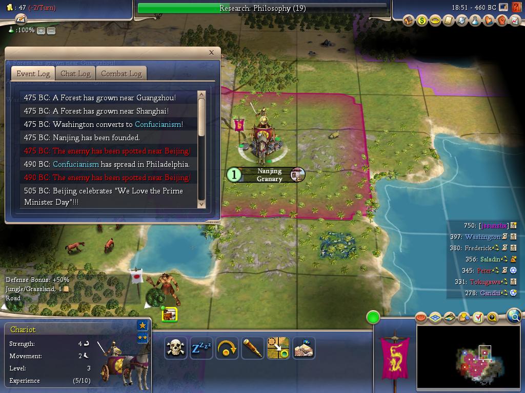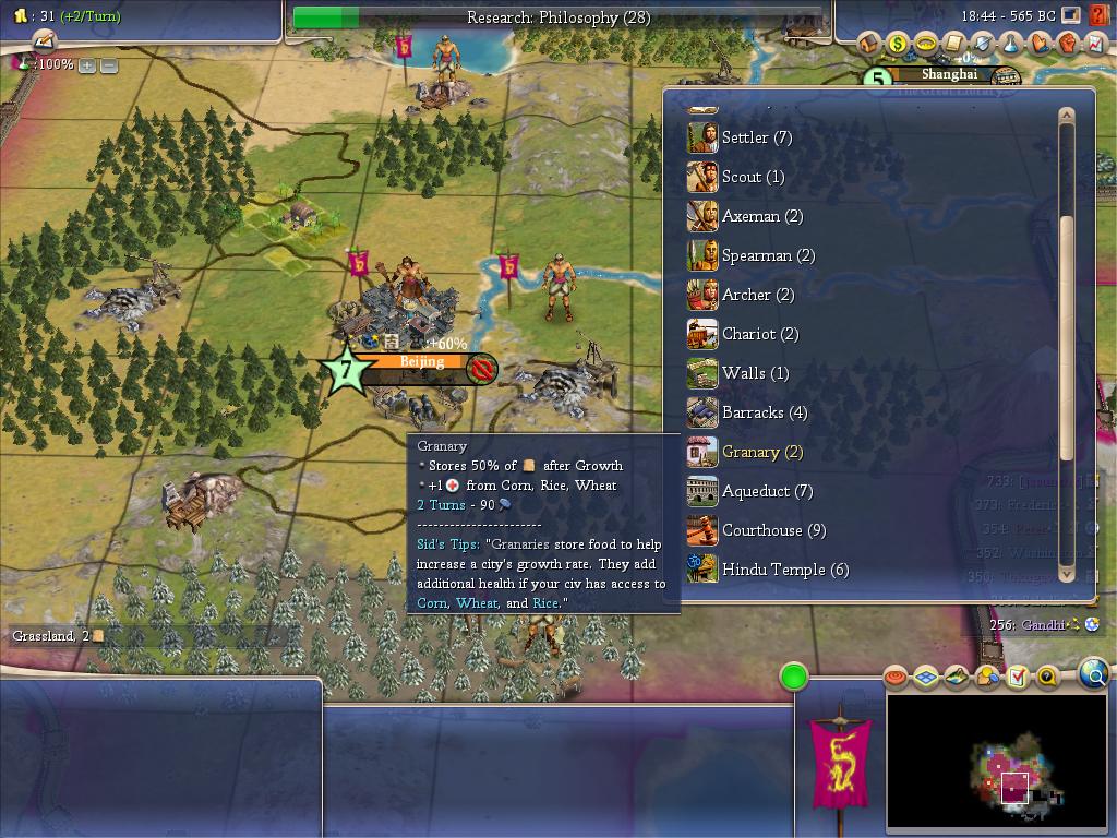 从文明1玩到文明4,有好些年头了,延续自己一贯的游戏风格,种田、种田再种田~不是我不喜欢打仗,实在是不喜欢过多在战术层面纠缠,比如玩三国志,最喜欢的永远是三国九,三国十和十一怎么也不会去理会的