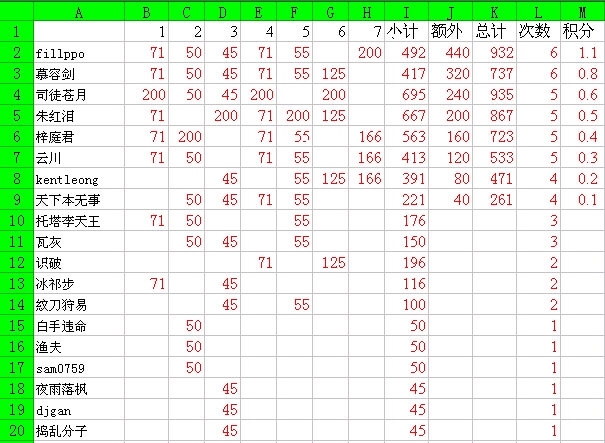 No.3 功绩奖励方案,采取积分方式,每月的前八名依次将获得1.1,0.8,0.6,0.5,0.4,0.3,0.2,0.1分;每月积分可以累积,满1分的话将通过后台追加1功绩。