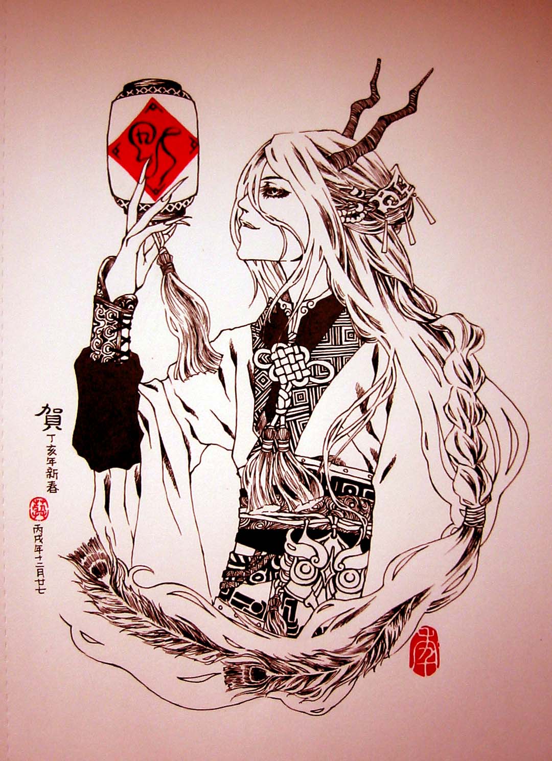 在家里无聊画的.是那个叫"年"的头上长角的(忽略那个角吧乱画的orz)年三十晚上出来吃人的怪兽.至于这一只为什么既不青面又不獠牙.那是祖宗留下的美好传统啊越是凶残的妖魔鬼怪就越闭月羞花= =|||