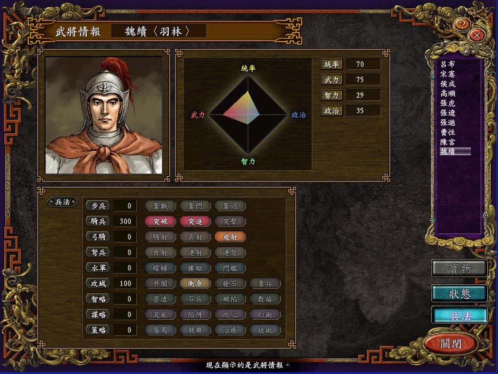 标题: 豪杰同台,诸侯并立剧本吕布势力麾下武将全分析, 用了名将补丁,不过熟练度还是原版的没改