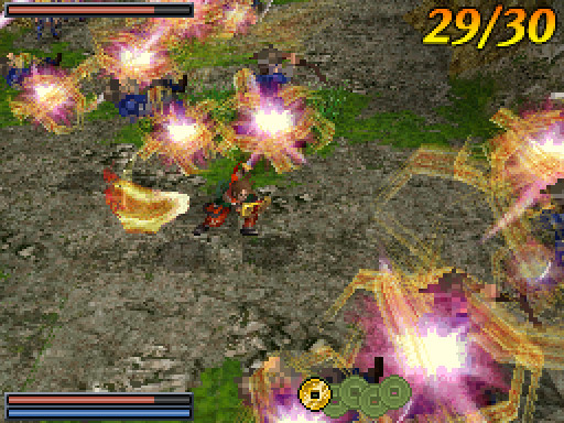 除了硬碰硬的刀剑砍杀之外,游戏中也加入了「妨碍轮盘」系统。战斗中只要收集打倒敌人后掉落的金钱,就可以用来转动妨碍轮盘,施展轮盘所标示的妨碍招 式,象是提升我方士兵能力、让敌人冻结不能动弹的「寒波到来」、引发大地震的「大地振动」、妨碍敌方视线的「暗云召唤」..等等。当与敌方头目对战时,抓 准时机施展妨碍招式将有机会一口气逆转局势,让对战的变化与策略性更为丰富。