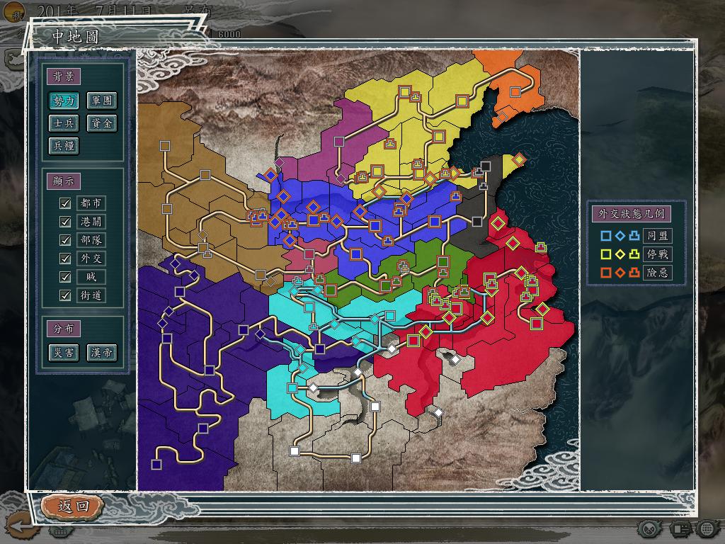 ★忽略地图距离:该补丁改变修改距离的计算代码,使得地图距离总为0,从而在执行武将移动、人员登用等指令时可省去移动耗时。嫌游戏节奏慢的朋友可考虑;