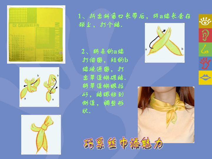 诸位帅哥美女们,今天让我们来学习一下丝巾的几种系法.