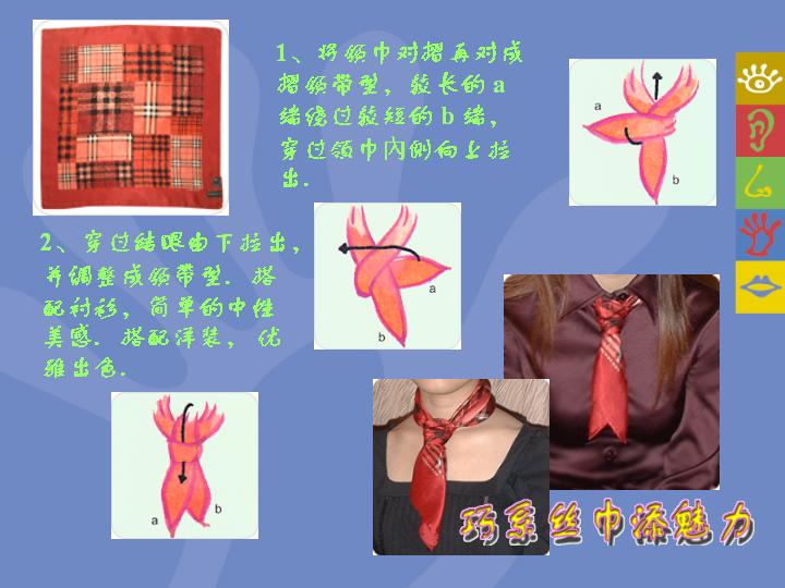 诸位帅哥美女们,今天让我们来学习一下丝巾的几种系法.