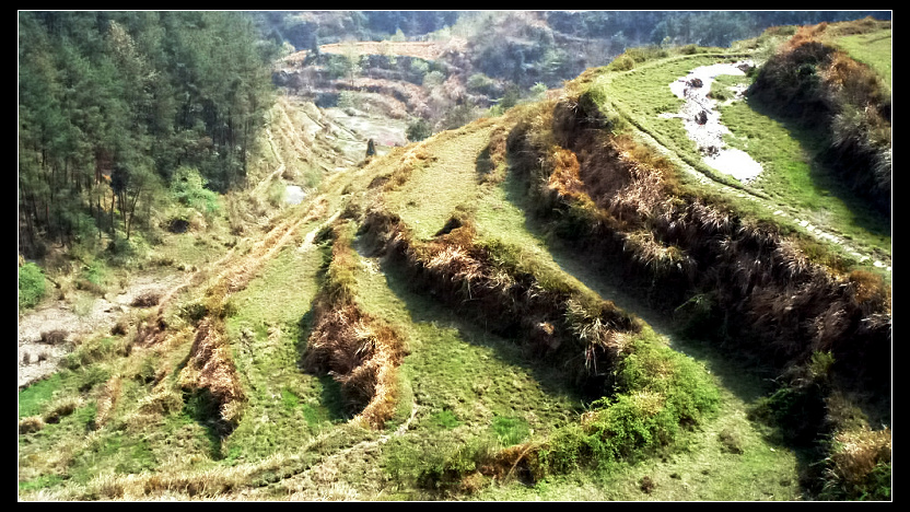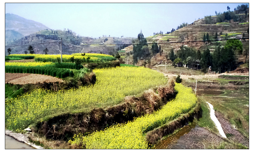 俺去的时候油菜花田已很少了,花期将过,逐沿山路看梯田去。