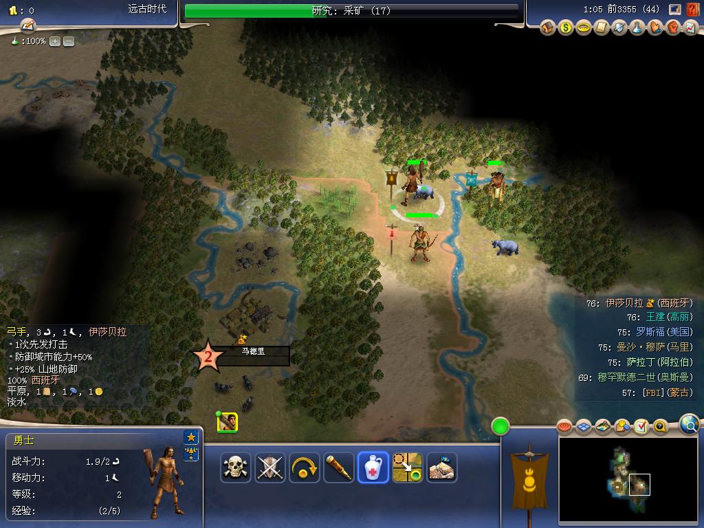 别失八里杀出兵营和一小弓,加上主城出的小弓和2棒棒杀向佛教圣城马德里,第一次蒙西战争拉开了序幕,又来了个小插曲。