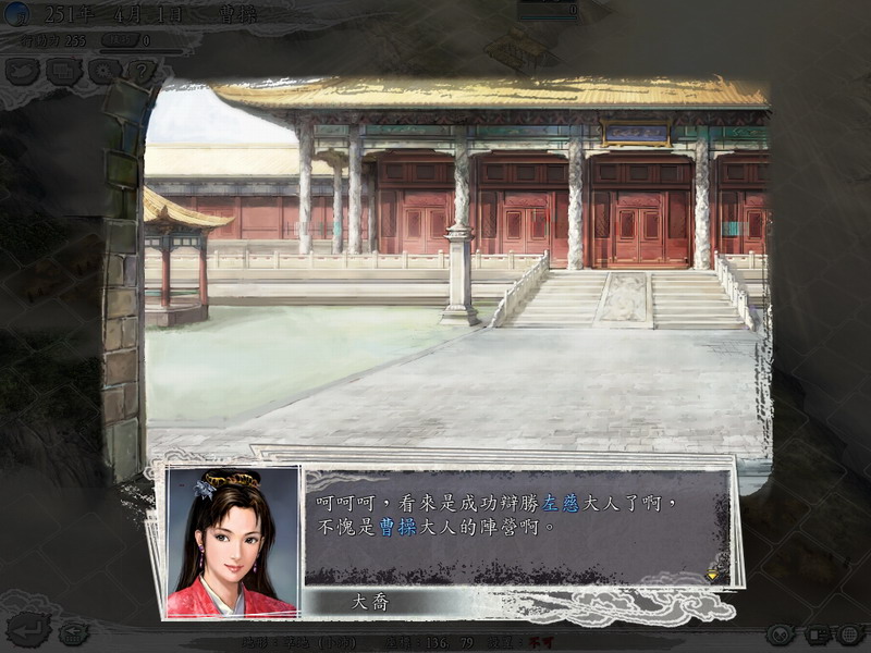 5. 曹丕到达梓潼舌辩战胜左慈;曹彰再次去吴收获大乔;曹睿到达庐江收获小乔,并且额外得到cg一张;这样差不多就用了100天就完成了“将7位女性将官招为麾下”的任务