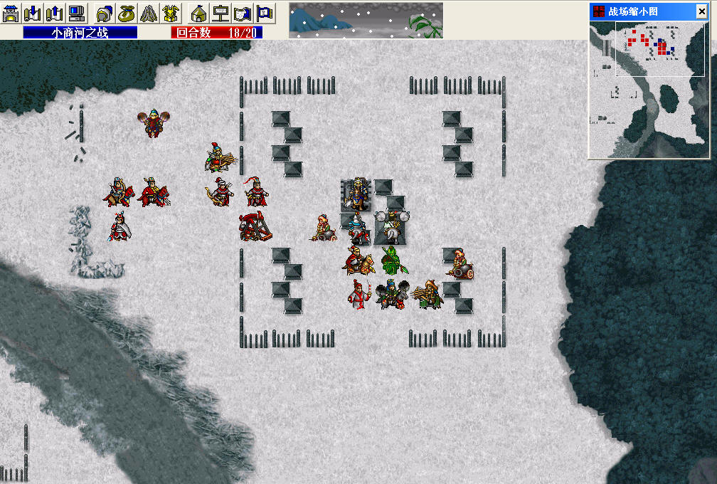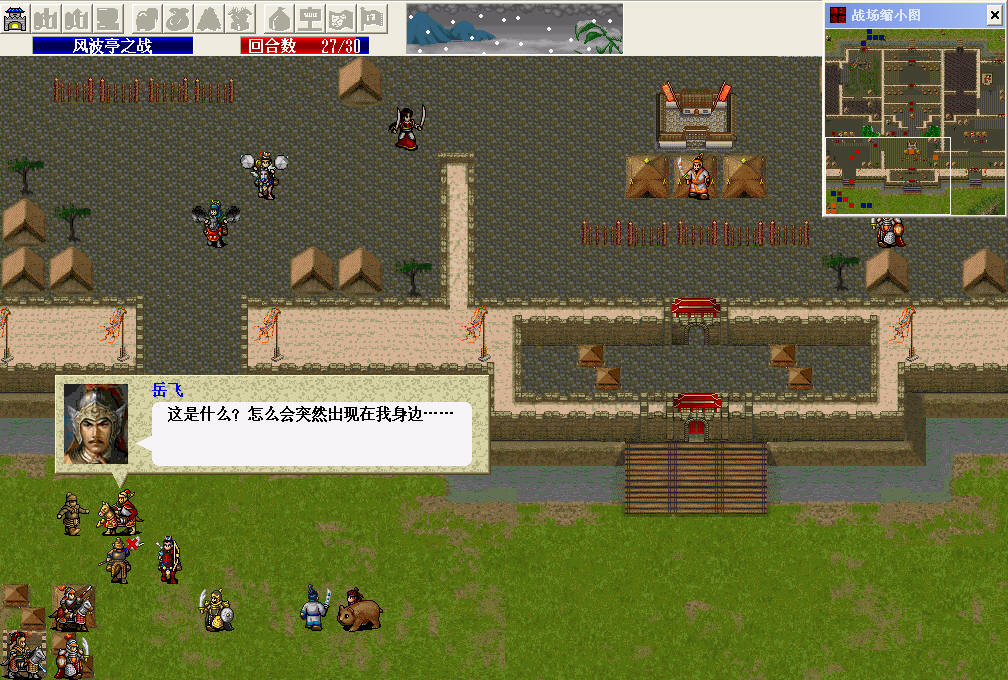 终于打到小商河了,出现了很多人都碰到过的问题,第四回合结束岳云只能勾引到一个弓箭手而无法在第五回合与杨再兴对话,在版上查阅无数贴子无果之后我自己修改了一下杨再兴和岳云的装备进行了测试,终于发现能让岳云产生吸引力的条件。。。