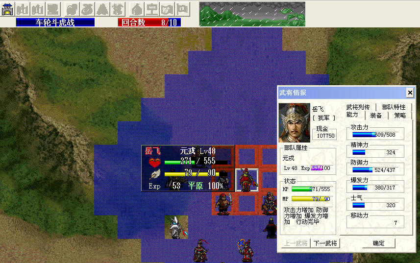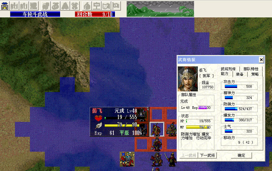 导致后面没有能够击退陆文龙(10级连环铠吃佳肴+250血太BT了),另外岳飞的精忠报国在这关只加移