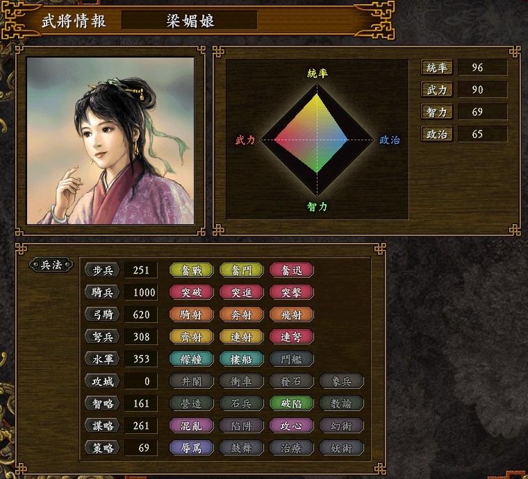 2.兵法熟练度上限,大部分人物的上限都是10000,因此,看到赵云1200+的骑兵熟练度,不要奇怪