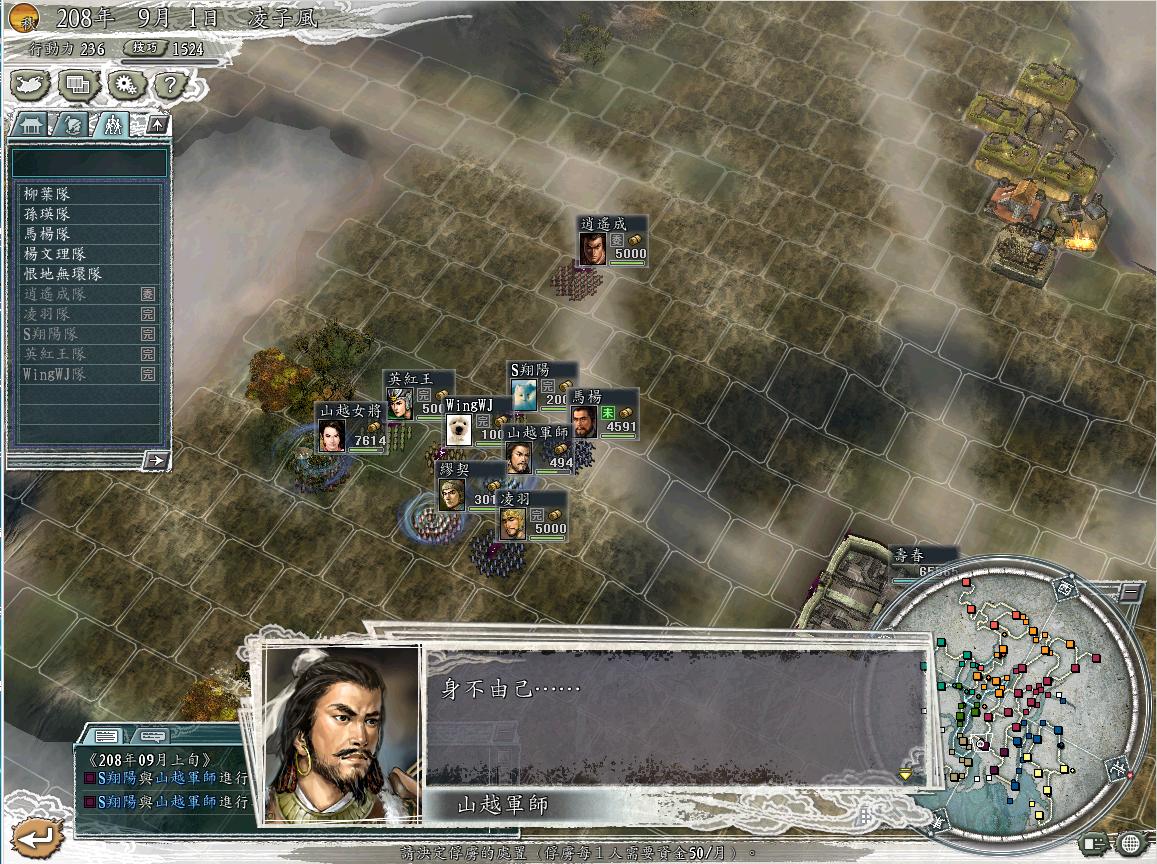 仔细盘点敌军进犯之敌人.靠!还有个7百多人的MM冲车队 而且还带着个俘虏来...此俘虏是刘猿猴军的英雄刘备,看忠诚度已经掉到93了.