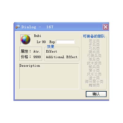 对话框→167→   CONTROL "君主类", 1472, STATIC, SS_CENTER | WS_CHILD | WS_VISIBLE | WS_DISABLED | WS_GROUP, 150, 16, 42, 8
