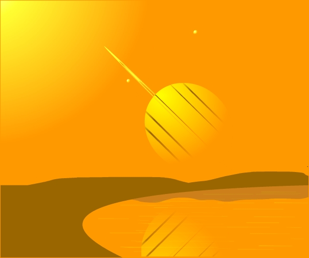 明白明白,我经常看土卫六资料的,我也知道,土卫六轨道跟土星光环的交角极小,算得上是大致在同一平面。不过如果完全是水平,那么这条光环就看不见了,总不能让土星最美丽的光环变成一条直线吧,如果成直线,那么光环就没有了光感染色一工序了。所以,我画光环时就先画椭圆,然后尽力去压扁,如果再压就成直线了,效果非常不好,于是就留这么一点夹角了。