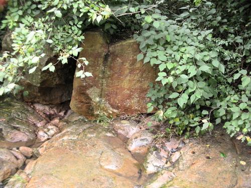 “光绪乙未秋九,胡乃煦曾之撰孙同康强至善蒋元庆偕会稽陶睿宣同游。时大雨除过,涧水涓涓杂红叶——沥下睿宣记。刻石人蒋伯荣。”