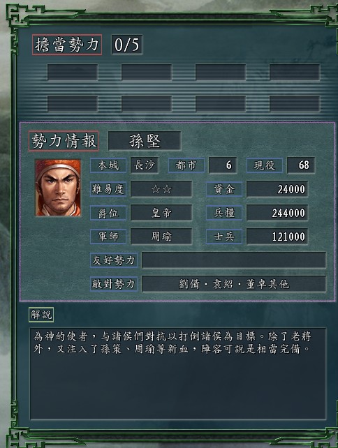 5。刘备和孙坚一开始没港口,其他3个势力都有