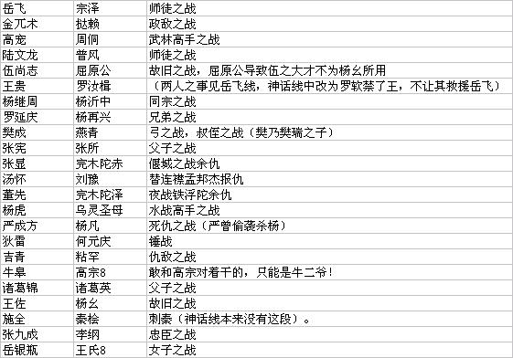 平原 杨再兴 何元庆 诸葛英 余化龙 柴桂 曹成 王善 罗辉 戚方