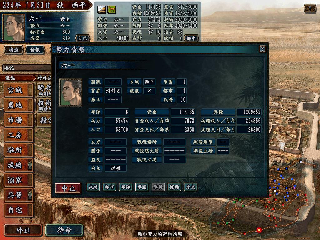 一个季度才打一次,没次至多就1个月,有2个月发展内政还不够吗?有邓艾陷阱落石突击放箭应该很好打的,不会损失太多兵,有突骑野战就无敌了,况且后三国时代蜀国没多少强人。其实开始应该放弃西平要武威,武威能出突骑还能升级弓兵出弩兵,而且后期也不要太急进攻城,有江州永安足矣,等曹魏灭武威后再灭蜀灭了过就不用杀人了,不降就放吧,过3,4个月对你势力的初始隐藏忠诚度就会上来的,就可以收了。只要在永昌灭蜀过3,4个月他们也不会跑太远的,多半还在你的领地里。