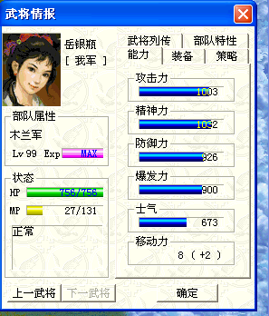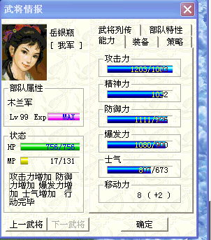 而我的女兵还不是先天武力100智力100,90敏90统的完美女兵.