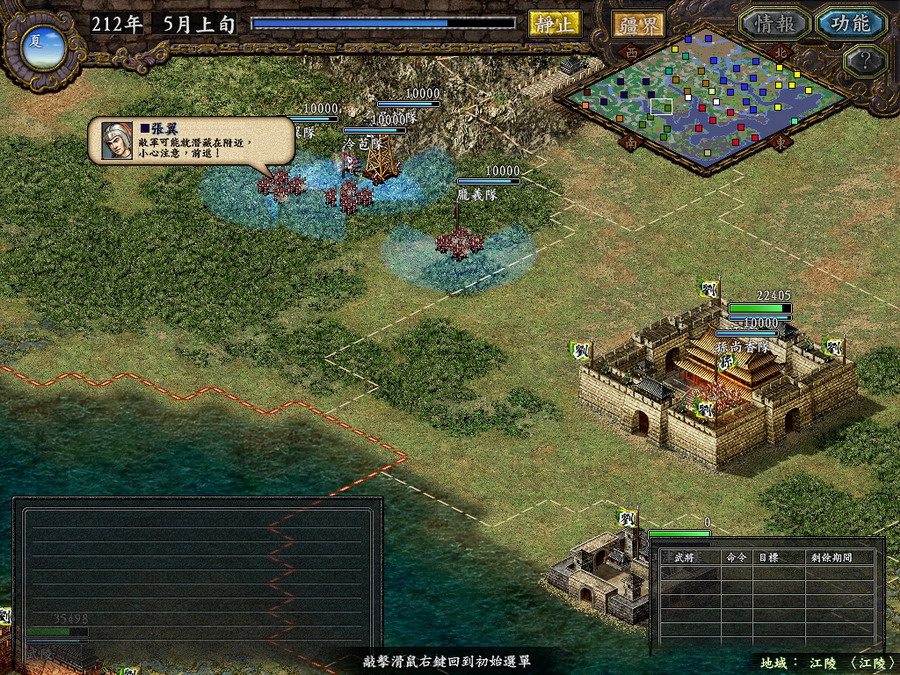经过更新,剧本内的各大势力平衡性增强不少,不管玩家选用那一个势力,其他势力间都不会出现很快被灭掉的情况,玩家可以慢慢欣赏各势力间的来回征战,而不用担心短短数年一两个势力独大的局面。像曹袁大战,孙刘荆州之争,曹袁孙日本四国混战,刘璋的扩张战役等等,只要玩家有耐心看,电脑间的争斗也很有意思的。