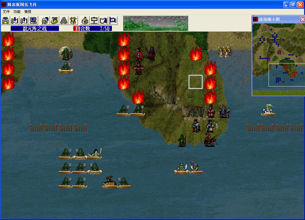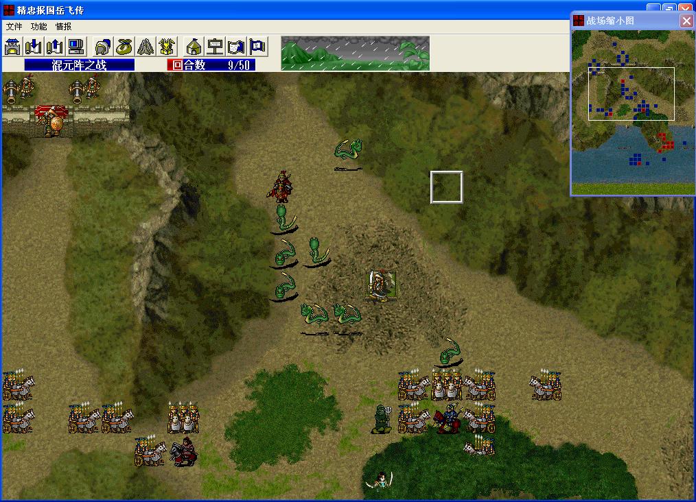 由于吕布兄练人的关系,杨虎等人等级太低没出场。1~5 回合完成开始布局。