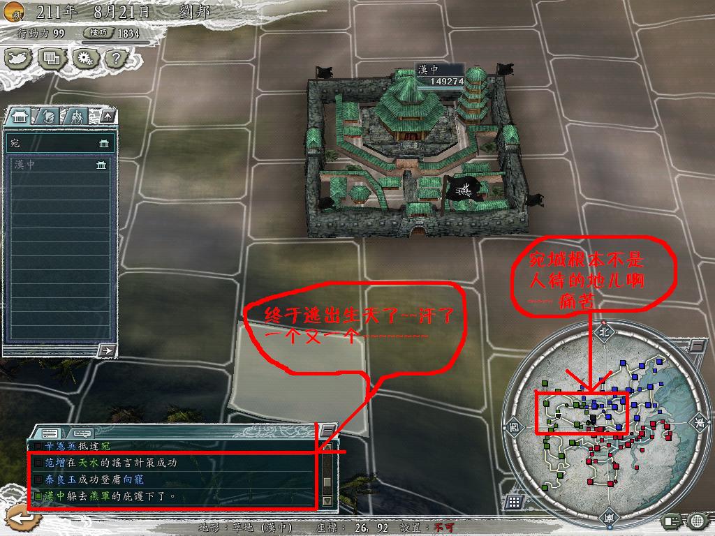 放弃宛城 立刻去汉中休息 多好防守的一块地方啊~~~呵呵 相比宛城