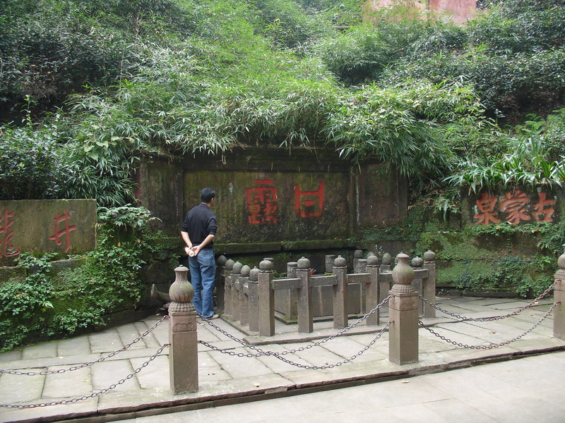 山之雅,二在于古。蒙顶山文物古迹,历史遗产颇多,而且保留完好。为人瞩目的有“七株甘露种,五峰碧云芽”的皇茶园遗址,“乳滴倾听久,还防动雷雨”的蒙泉古井,“日月盘根转,风雷入地含”的石笋,盘龙翩翩起舞,分颉有遗篇的盘龙亭,“云来钟杆湿,僧定古楼空”的永兴寺,“不知何年代,骓在白云巅”的天盖寺。还有自唐至清分工管种茶、采茶、制茶;评茶的庙宇千佛寺、静居庵、智炬寺、永兴寺。阴阳石麒麟,蒙顶山全石牌坊,工艺精湛,令人稀奇。还有近代作品大禹像,蒙茶仙姑,皇茶石虎,因造型厚动,位置迁宜,也添雅议。