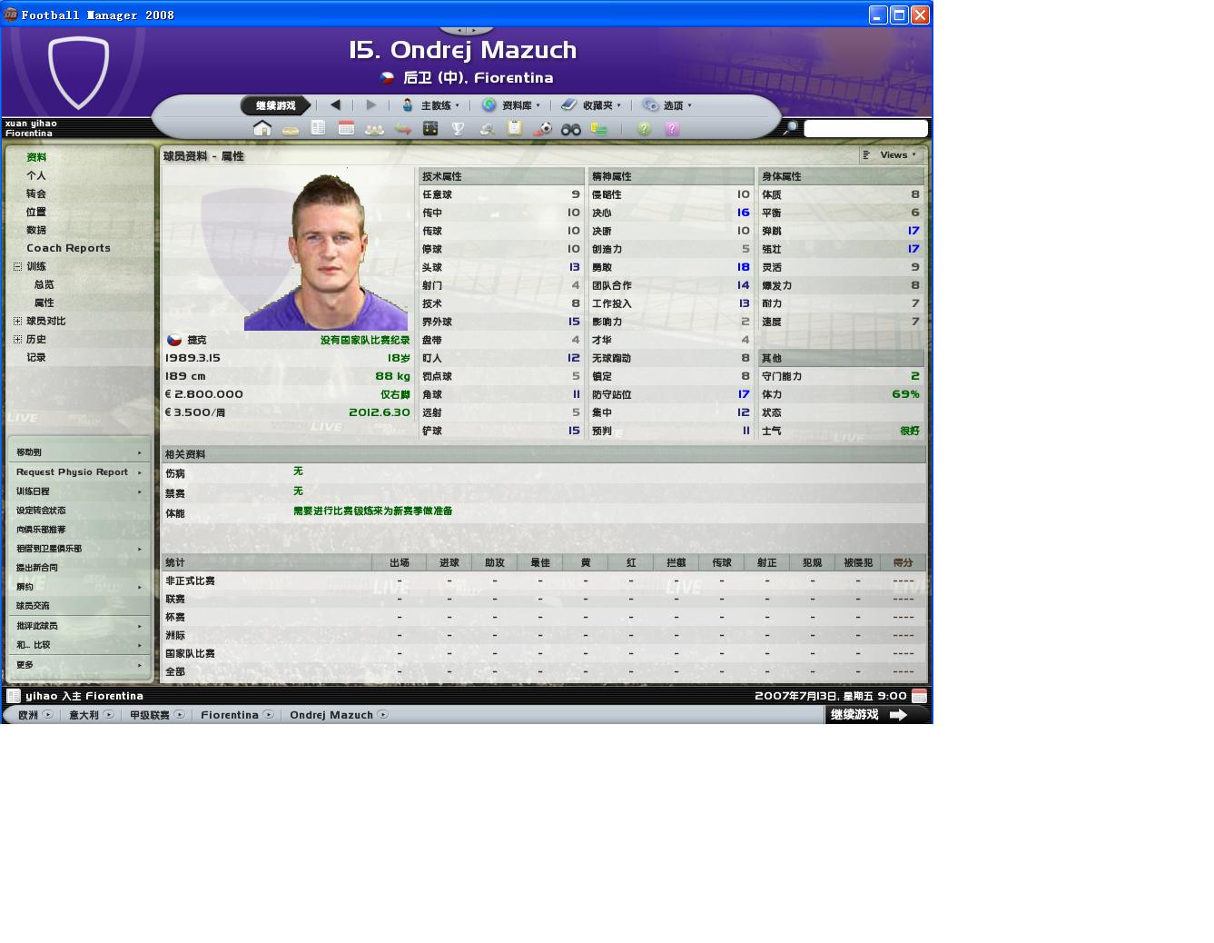 能力实在对不起他那身9号球衣,数据分配也不好。潜力还说得过去但是很难练满。随便练练就赶紧卖了吧。能力101,潜力160