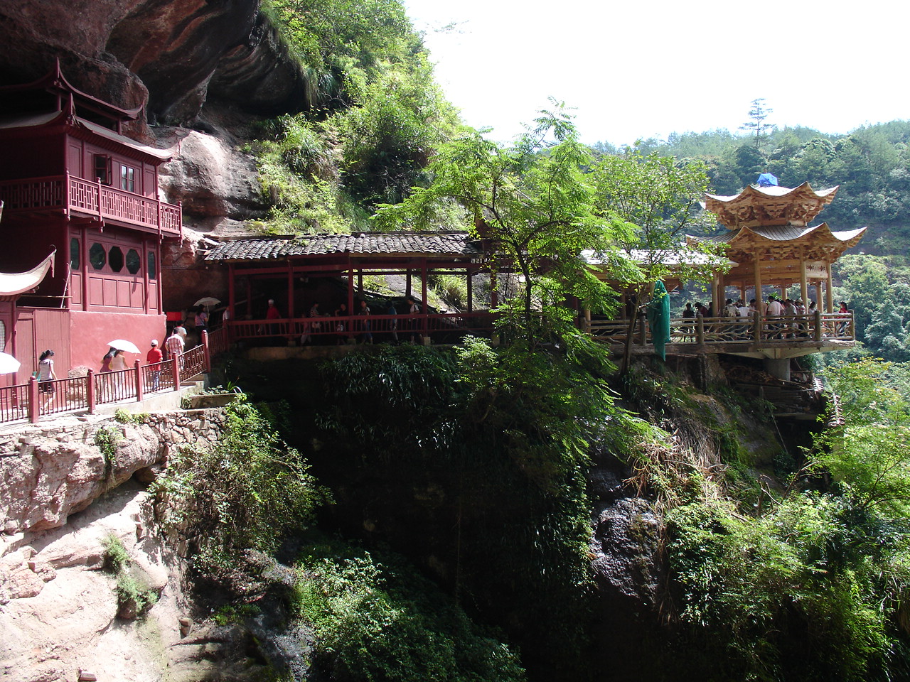 乘船前往第一个景点 是座小岛 岛上有瀑布和悬空寺 甘露寺吧!!