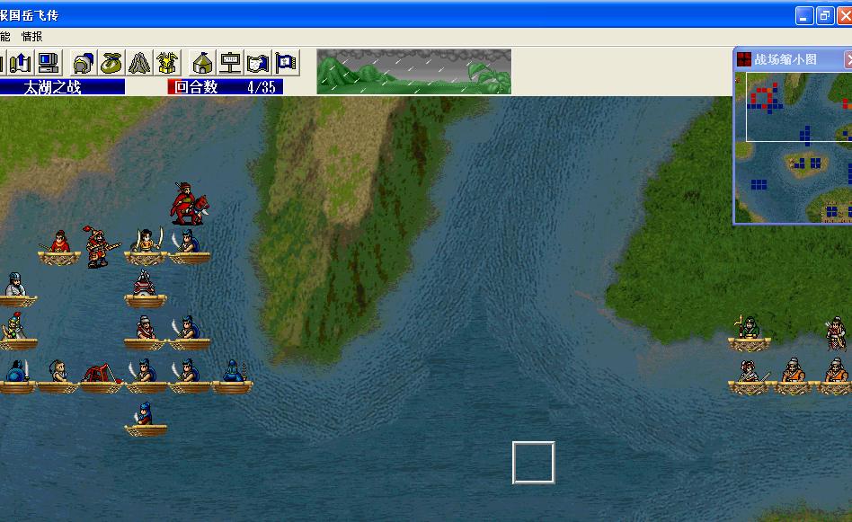 4.此关必须先占领朱雀阵的阵眼才能破其他阵,在此为朋友们准备了两种快速占领朱雀阵阵眼的打法。一种是我下面的贴图,1回合敌方行动时那笨阵主会移动开,王佐上去占领即可破除朱雀阵;另一种第1回合相同,但敌方行动回合时阵主未移动,2回合时将王佐往岳雷方向移动到阵主必须移动才能用策略打到的位置,然后三个文官进阵引发阵势效果,岳雷快速前冲,敌行动时阵主就会移动出来用策略打王佐;第3回合装备踏雪的岳雷正好可以移动到阵眼位置。用第一种方法可避免引发阵势效果,是上上之策。