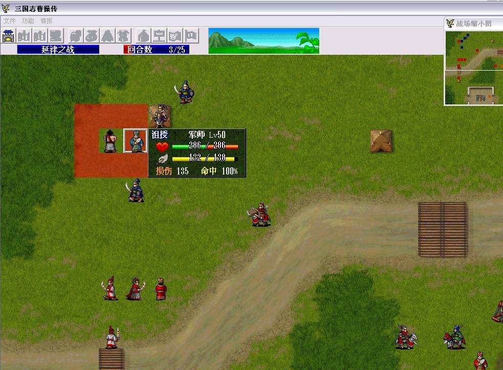 选择粮草队诱敌,则文丑带着一大溜部队全过河思考来了,其中有一列纵队排得相当整齐,不用想了,程昱上去爆炎,注意站在文丑右上脚卡住他的逃跑路线。