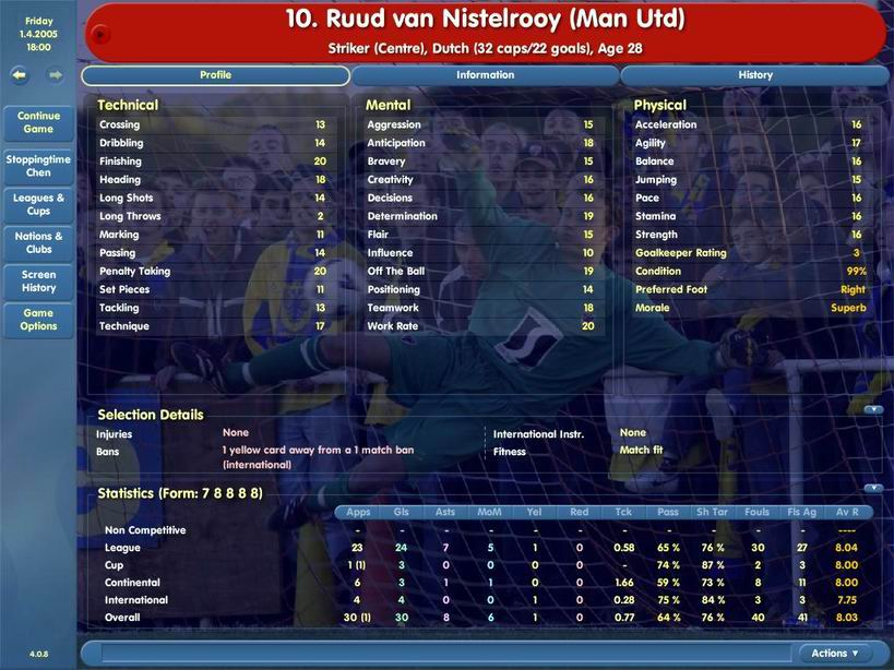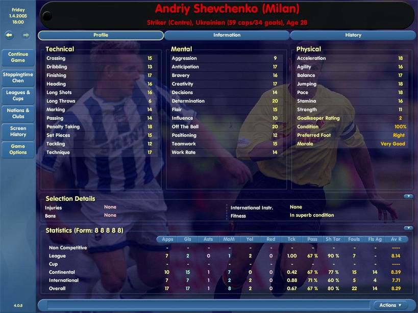 技术:8 速度:8.5 抢点:13 头球:8 助攻:7 身体素质:7.5