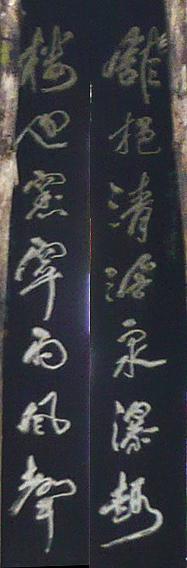 上联“泉石”之后的字被树叶挡住,不知所以。下联“贲华”好生僻啊。不知出自何处。