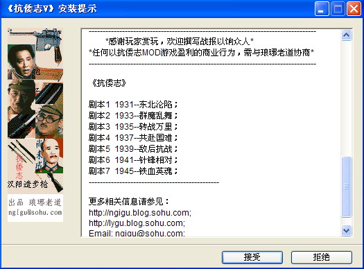 1、本套剧本改编自《三国志五简体中文版》,免CD,可在9x/2k/xp/2003上执行(画面256色)。需光驱,虚拟光驱也行。不需安装,不写注册表,解压后即可游戏,直接运行《抗倭志.exe》。