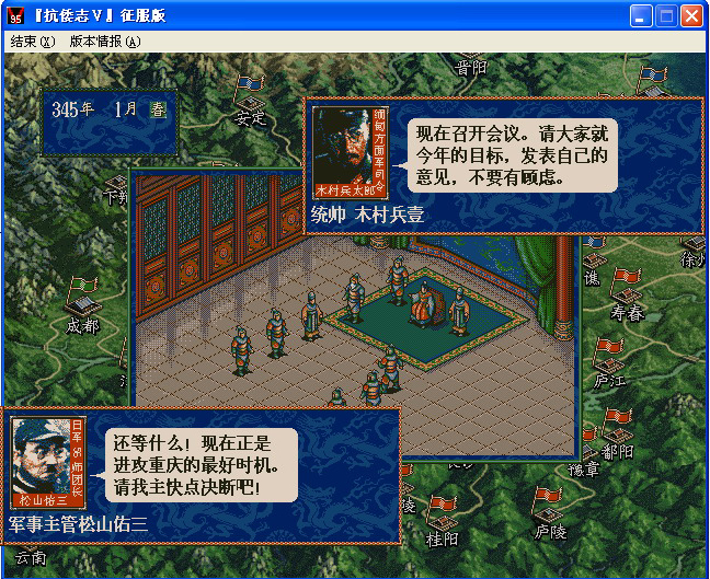 4、视窗版35的堆栈释放较慢。所以在重新开局前,必须先将游戏完全关闭,即关闭游戏主窗口(如果你不理解什么叫完全关闭游戏,那直接把电脑关闭好了:),然后重新运行《抗倭志.exe》,千万避免通过游戏中【功能->结束->重新开始】按钮开局,否则每年度有新武将参战时,容易出现人员初始数据错误:如年龄超标,登陆地点紊乱等。按此段提示正常开局后,游戏过程中的存档读档则不受影响,不会出现数据紊乱。