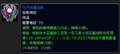 装备后效果:在成功施放法术后有2%几率可以触发100%魔法恢复的效果,持续15秒。
