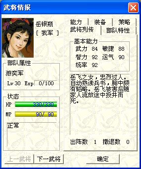 心得:1.我选择岳飞在营中触发伏兵,降士气和防御,其实这样也没增加多少难度。