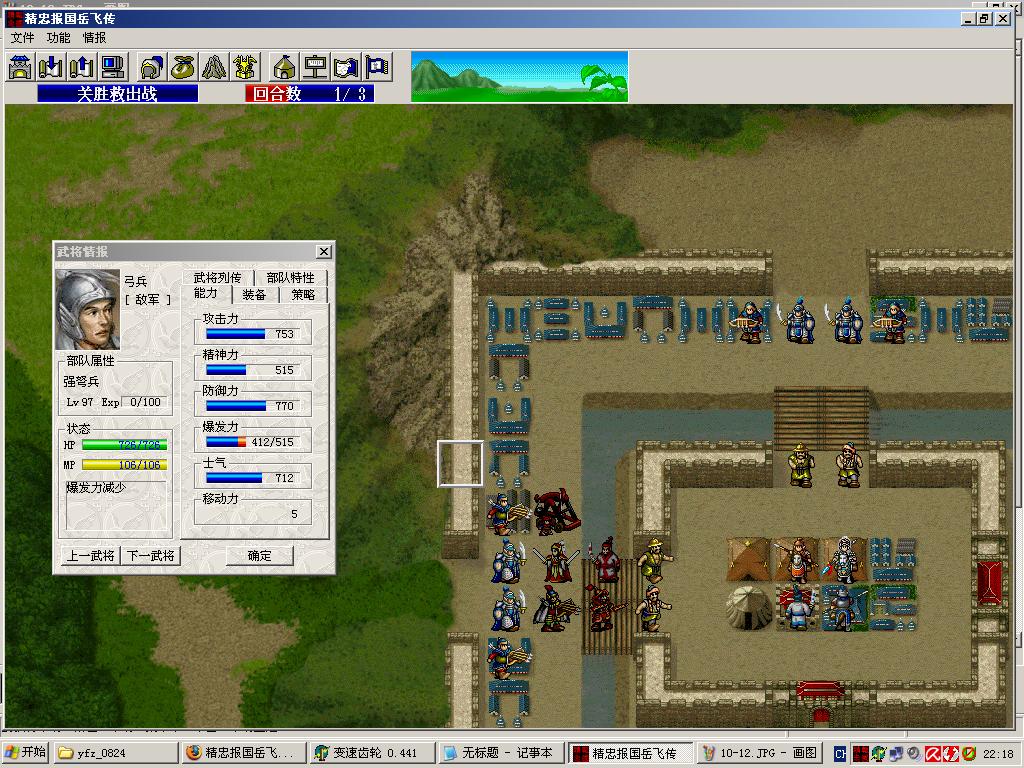 3. 黄河关和沥泉关没打,因为这两关敌人出场等级就是固定的,即使我方战场上改成99级敌人也还是低等级。
