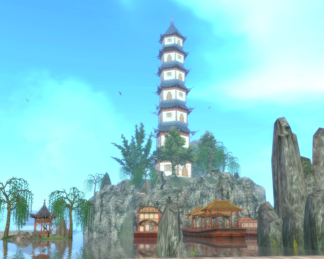 下面的图是在游戏中江南场景的云轩城截的图