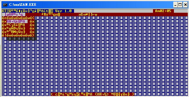 以前在windows 98 都可以用, 但现在用xp 开出来都是乱码 (如图), 试了dosbox 和VDMS都是一样, 请问大大们有没有其他dos 模拟器可以在xp上开这个档案的?? 谢谢了!!