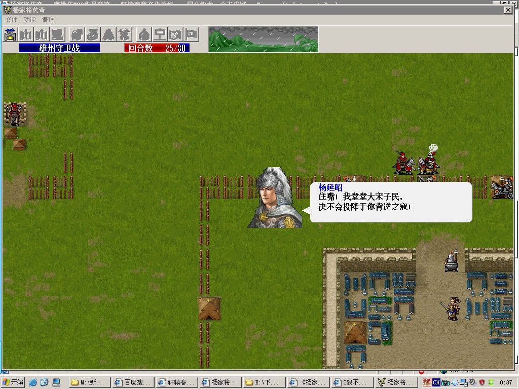 第二回合,通过杨延嗣的反击,三骑兵只剩2个,在砍掉上边的,杨延德砍掉下边的,其余人砍杨延昭旁边的,可能砍不死,看你出场顺序,此时柴MM会毒杨业或四郎;六郎如果被毒或被砍血少,八郎正好出来补血。到敌军行动是呼延会主动找老五单条,无结果。