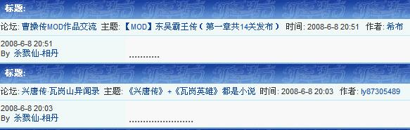 你在“瓦岗山异闻录”、“精忠报国岳飞传”、“曹操传MOD作品交流”等区先后灌水或刷版,帖子内容形如附件1。