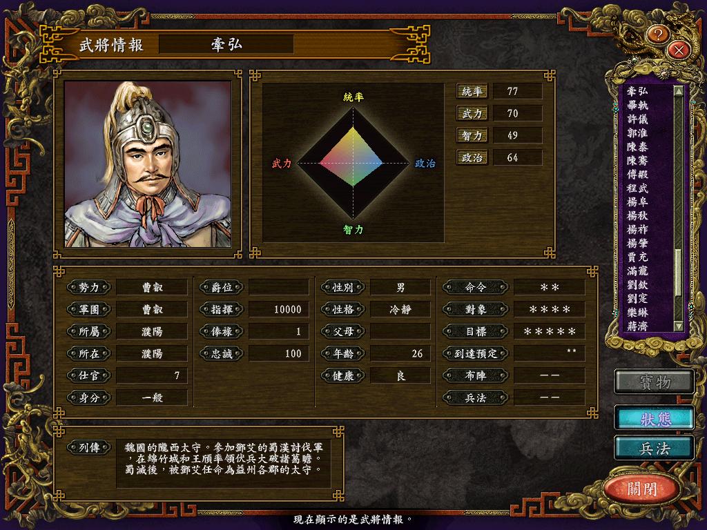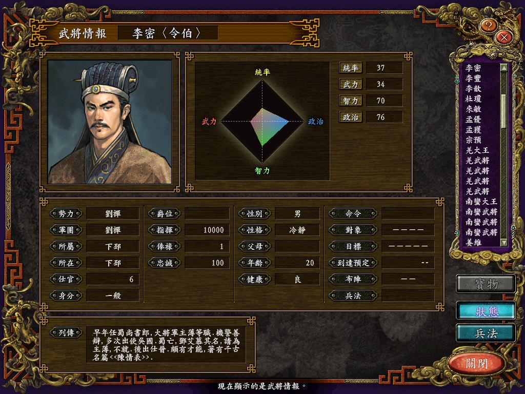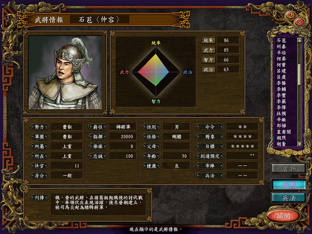 标题: 请求高手给一份三国9人物中可以划到晋的人物列表,文档,截图均可,谢谢