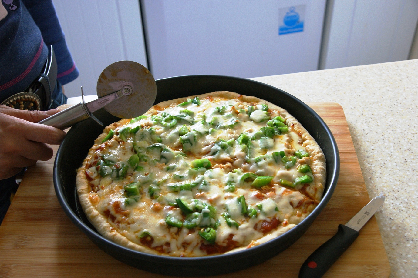 标题: 家庭比萨饼(原创), Recipe of Homemade Pizza (Chicken and Pepper)