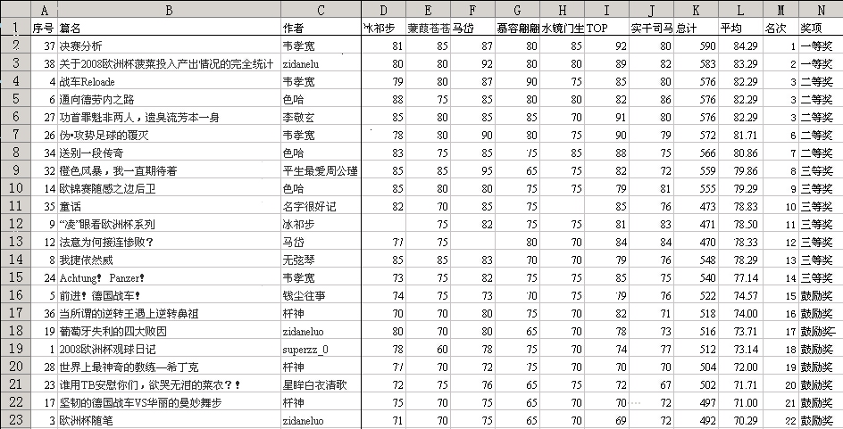 【颁奖贴】08欧洲杯征文最终评审结果揭晓