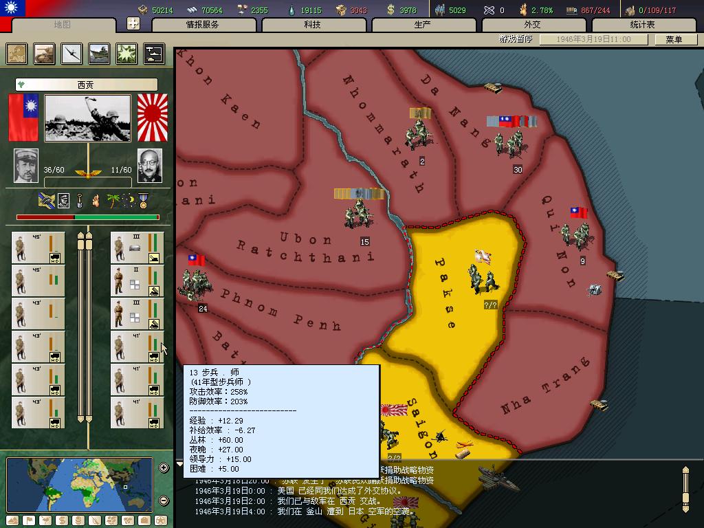 MIH 0.33 版本,选中华民国。共军打下宝鸡以后,我在西安和南郑的部队共计27个师反攻,准备收复失地,结果是我27个18步兵师竟然打不赢1个36步兵师?!!!