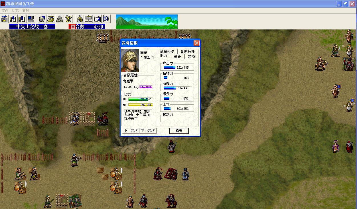 高宠的确是一个人双击加一爆可以一个人出来。(我也就sl了10+次吧,平均练级)高有剧情自加士气,出爆击较易,爆发略高所以双击较少。但出来后很快(最多两回合)就会被金军围起来无法动弹而随后剧情降敏格挡也下降,并且此时后面的铁滑车也赶上进攻,更可怕的是敌营有个道士(你出来第一回合差一步打不到)使僵尸法也失去作用,而且此时无法得到战友的火力和补给支援。