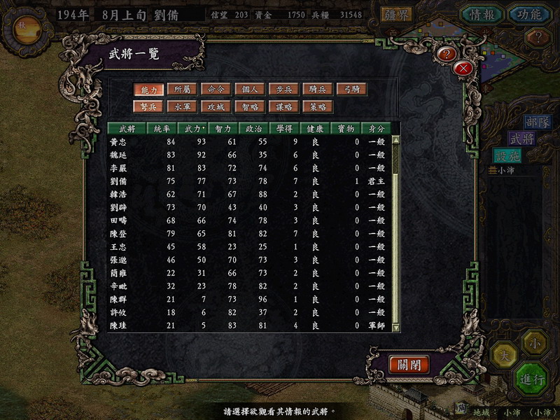 经过N+1次测试,194年剧本,刘备在小沛开局时,所能招募的固定将领人才榜已到手!