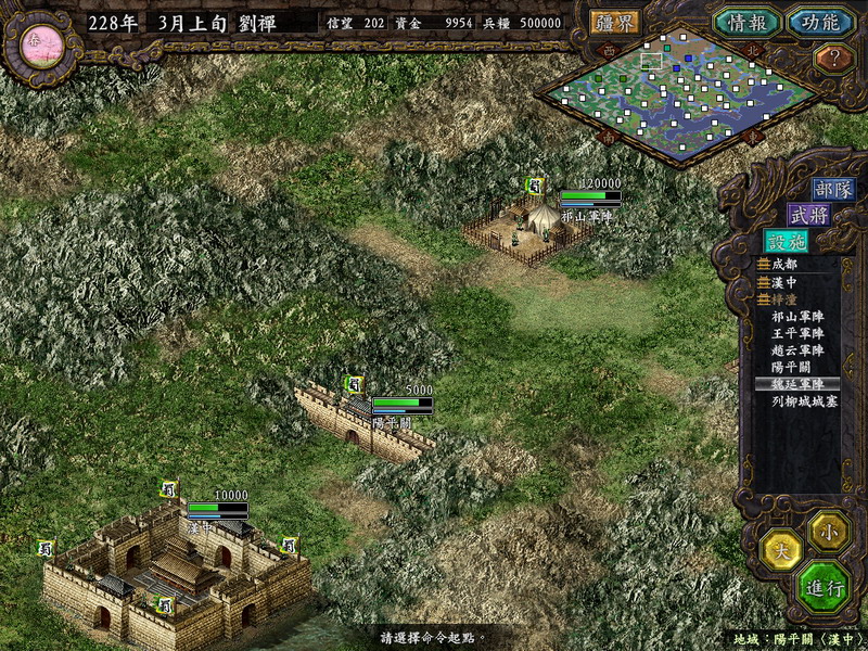 一个武侯北伐时期的短剧本,剧情以马谡屯兵山上开始,玩家让蜀汉逆转这个战役,保街亭不失,并攻克长安...